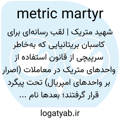 شهید متریک | لقب رسانه‌ای برای کاسبان بریتانیایی که به‌خاطر سرپیچی از قانون استفاده از واحدهای متریک در معاملات (اصرار بر واحدهای امپریال) تحت پیگرد قرار گرفتند؛ بعدها نام یک گروه لابی‌گری هم شد (Metric Martyrs).