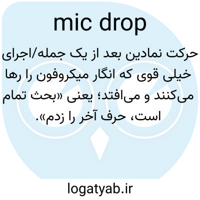 📌 عمل انداختن عمدی میکروفون در پایان یک سخنرانی یا اجرا، با نشان دادن اعتماد به نفس جسورانه مبنی بر اینکه بسیار چشمگیر بوده یا نمیتوان به پای آن رسید.