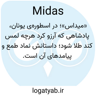 📌 اسطورهشناسی کلاسیک، پادشاه فریگیه، پسر گوردیوس، که دیونیسوس به او قدرت داده بود هر چه را که لمس کند به طلا تبدیل کند.
