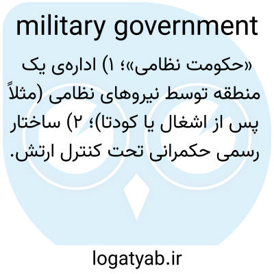 «حکومت نظامی»؛ ۱) اداره‌ی یک منطقه توسط نیروهای نظامی (مثلاً پس از اشغال یا کودتا)؛ ۲) ساختار رسمی حکمرانی تحت کنترل ارتش.