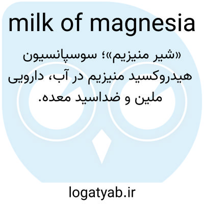 📌 سوسپانسیونی سفید شیری رنگ در آب از هیدروکسید منیزیم، Mg(OH)2، که به عنوان ضد اسید یا ملین استفاده میشود.