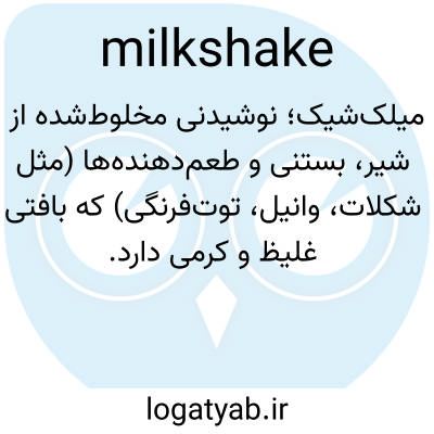 📌 نوشیدنی کفداری که از شیر سرد، طعمدهنده و معمولاً بستنی، که با همزن زده یا در میکسر مخلوط شدهاند، تهیه میشود.