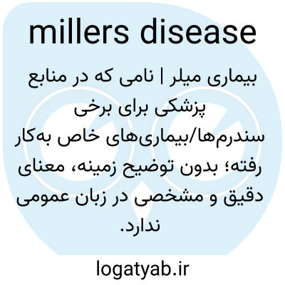 بیماری میلر | نامی که در منابع پزشکی برای برخی سندرم‌ها/بیماری‌های خاص به‌کار رفته؛ بدون توضیح زمینه، معنای دقیق و مشخصی در زبان عمومی ندارد.