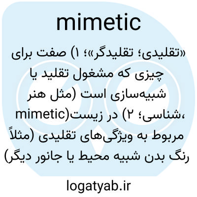 «تقلیدی؛ تقلیدگر»؛ ۱) صفت برای چیزی که مشغول تقلید یا شبیه‌سازی است (مثل هنر mimetic)؛ ۲) در زیست‌شناسی، مربوط به ویژگی‌های تقلیدی (مثلاً رنگ بدن شبیه محیط یا جانور دیگر).