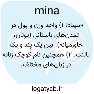 «مینا»؛ ۱) واحد وزن و پول در تمدن‌های باستانی (یونان، خاورمیانه)، بین یک پِند و یک تالنت. ۲) همچنین نام کوچک زنانه در زبان‌های مختلف.