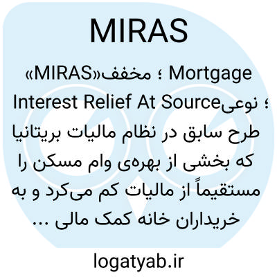 «MIRAS»؛ مخفف Mortgage Interest Relief At Source؛ نوعی طرح سابق در نظام مالیات بریتانیا که بخشی از بهره‌ی وام مسکن را مستقیماً از مالیات کم می‌کرد و به خریداران خانه کمک مالی می‌داد.
