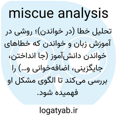 تحلیل خطا (در خواندن)؛ روشی در آموزش زبان و خواندن که خطاهای خواندن دانش‌آموز (جا انداختن، جایگزینی، اضافه‌خوانی و…) را بررسی می‌کند تا الگوی مشکل او فهمیده شود.