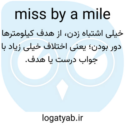 📌 کم آوردن، با اختلاف قابل توجهی شکست خوردن، مانند حدس شما در مورد برنده با اختلاف یک مایل. این عبارت از miss به معنای «شکست در اصابت به چیزی که به سمت آن نشانه گرفته شده» استفاده می‌کند، کاربردی که از اواخر دهه ۱۴۰۰ میلادی رواج دارد، و با اختلاف یک مایل برای فاصله یا فاصله زیاد، که از زمان شکسپیر به این سو استفاده می‌شود.