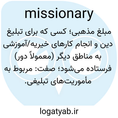 مبلغ مذهبی؛ کسی که برای تبلیغ دین و انجام کارهای خیریه/آموزشی به مناطق دیگر (معمولاً دور) فرستاده می‌شود؛ صفت: مربوط به مأموریت‌های تبلیغی.