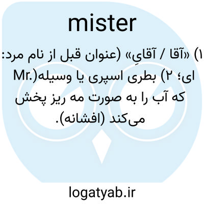 📌 آقا، عنوانی که قبل از یک نام خانوادگی ساختگی قرار میگیرد و برای نشان دادن داشتن یک ویژگی، هویت و غیره خاص استفاده میشود.