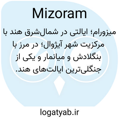 📌 ایالتی (از سال ۱۹۸۶) در شمال شرقی هند، که در سال ۱۹۷۲ از ناحیه سابق میزو هیلز در آسام ایجاد شد. پایتخت: ایجال. جمعیت: ۸۹۱ ۰۵۸ (۲۰۰۱). مساحت: حدود ۲۱ ۰۸۱ کیلومتر مربع (۸۱۴۰ مایل مربع)