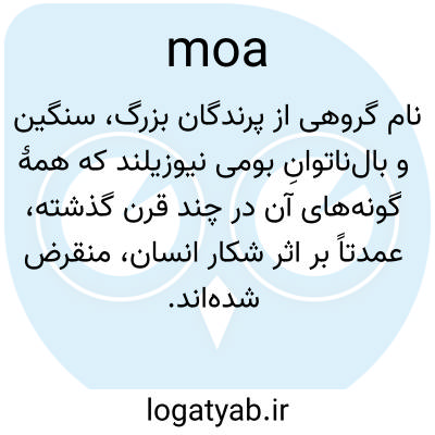 📌 (هر یک از چندین پرنده‌ی بی‌پرواز از خانواده‌ی دینورنیتیده، بومی نیوزیلند، خویشاوند کیوی‌ها اما شبیه شترمرغ: از حدود پایان قرن هجدهم منقرض شده‌اند.)