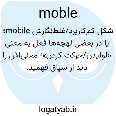 شکل کم‌کاربرد/غلط‌نگارش mobile؛ یا در بعضی لهجه‌ها فعل به معنی «لولیدن/حرکت کردن»؛ معنی‌اش را باید از سیاق فهمید.