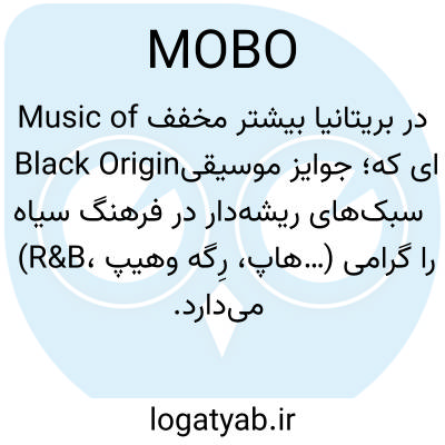 در بریتانیا بیشتر مخفف Music of Black Origin؛ جوایز موسیقی‌ای که سبک‌های ریشه‌دار در فرهنگ سیاه (R&B، هیپ‌هاپ، رِگه و…) را گرامی می‌دارد.