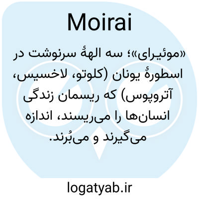 «موئیـرای»؛ سه الههٔ سرنوشت در اسطورهٔ یونان (کلوتو، لاخسیس، آتروپوس) که ریسمان زندگی انسان‌ها را می‌ریسند، اندازه می‌گیرند و می‌بُرند.