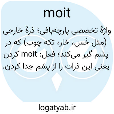 واژهٔ تخصصی پارچه‌بافی؛ ذرهٔ خارجی (مثل خَس، خار، تکه چوب) که در پشم گیر می‌کند؛ فعل: moit کردن یعنی این ذرات را از پشم جدا کردن.