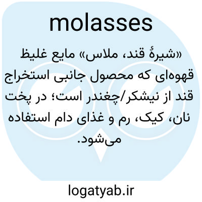 «شیرهٔ قند، ملاس» مایع غلیظ قهوه‌ای که محصول جانبی استخراج قند از نیشکر/چغندر است؛ در پخت نان، کیک، رم و غذای دام استفاده می‌شود.