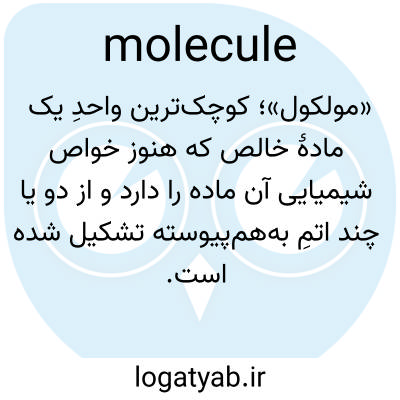 📌 شیمی، فیزیک، کوچکترین واحد فیزیکی یک عنصر یا ترکیب، متشکل از یک یا چند اتم مشابه در یک عنصر و دو یا چند اتم متفاوت در یک ترکیب.