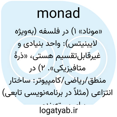 📌 (در متافیزیک لایبنیتس) موجودیتی نامتغیر، تقسیمناپذیر و فناناپذیر که جزء اساسی یا نهایی جهان و نمونهای کوچک از آن است.