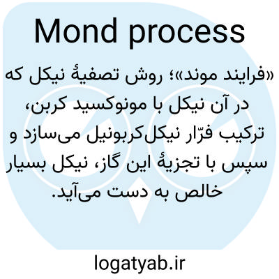 «فرایند موند»؛ روش تصفیهٔ نیکل که در آن نیکل با مونوکسید کربن، ترکیب فرّار نیکل‌کربونیل می‌سازد و سپس با تجزیهٔ این گاز، نیکل بسیار خالص به دست می‌آید.