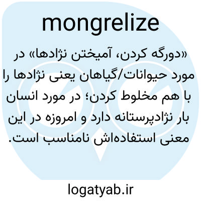 فعل mongrelize بار تحقیرآمیزی دارد؛ ویراستاران زبان خنثی مانند «mix» یا «hybridize» را توصیه میکنند، به خصوص خارج از زمینههای صرفاً زیستشناختی.