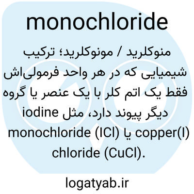 منوکلرید / مونوکلرید؛ ترکیب شیمیایی که در هر واحد فرمولی‌اش فقط یک اتم کلر با یک عنصر یا گروه دیگر پیوند دارد، مثل iodine monochloride (ICl) یا copper(I) chloride (CuCl).