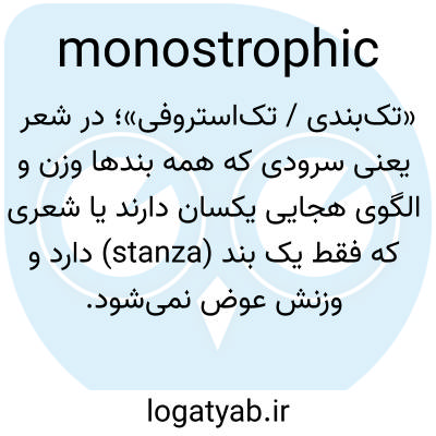 تکریخت، mon-ō-strof′ik، صفت. دارای فقط یک Strophe: از نظر اندازه متنوع نیست. - اسم.