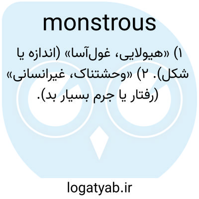 ۱) «هیولایی، غول‌آسا» (اندازه یا شکل). ۲) «وحشتناک، غیرانسانی» (رفتار یا جرم بسیار بد).