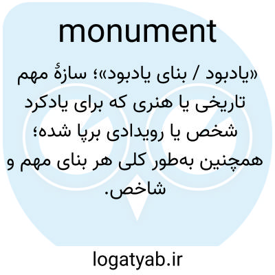 📌 چیزی که به یاد یک شخص، رویداد و غیره، مانند ساختمان، ستون یا مجسمه، برپا میشود.