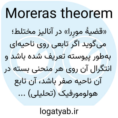 📌 این قضیه که یک تابع در یک دامنه‌ی همبند ساده تحلیلی است اگر انتگرال آن در اطراف هر منحنی بسته‌ی ساده با طول متناهی در آن دامنه صفر باشد.
