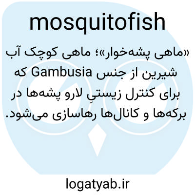 📌 هر یک از چندین ماهی که از لارو پشه تغذیه می‌کنند، مانند گامبوزیا آفینیس، که در جنوب شرقی ایالات متحده یافت می‌شود و اکنون برای کنترل پشه به سایر نقاط جهان معرفی شده است.