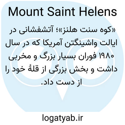 «کوه سنت هلنز»؛ آتشفشانی در ایالت واشینگتن آمریکا که در سال ۱۹۸۰ فوران بسیار بزرگ و مخربی داشت و بخش بزرگی از قلهٔ خود را از دست داد.