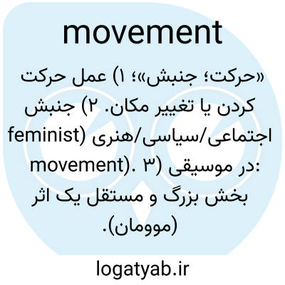 «حرکت؛ جنبش»؛ ۱) عمل حرکت کردن یا تغییر مکان. ۲) جنبش اجتماعی/سیاسی/هنری (feminist movement). ۳) در موسیقی: بخش بزرگ و مستقل یک اثر (موومان).