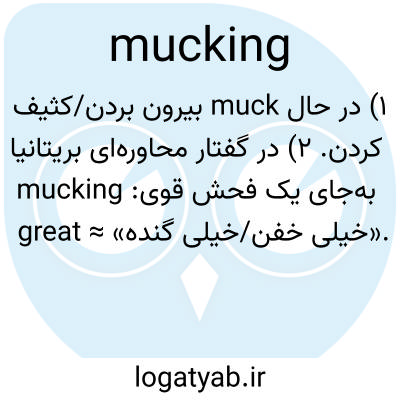 ۱) در حال muck بیرون بردن/کثیف کردن. ۲) در گفتار محاوره‌ای بریتانیا به‌جای یک فحش قوی: mucking great ≈ «خیلی خفن/خیلی گنده».