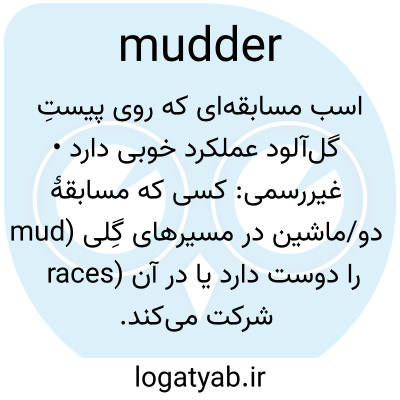اسب مسابقه‌ای که روی پیستِ گل‌آلود عملکرد خوبی دارد • غیررسمی: کسی که مسابقهٔ دو/ماشین در مسیرهای گِلی (mud races) را دوست دارد یا در آن شرکت می‌کند.