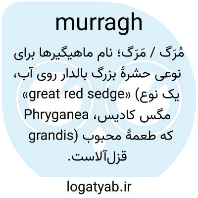 مُرَگ / مَرَگ؛ نام ماهیگیرها برای نوعی حشرهٔ بزرگ بالدار روی آب، «great red sedge» (یک نوع مگس کادیس، Phryganea grandis) که طعمهٔ محبوب قزل‌آلاست.