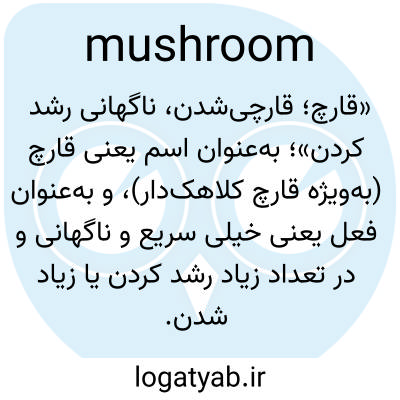 📌 هر یک از چندین گونه خوراکی، به ویژه از خانواده Agaricaceae، مانند قارچ علفزار Agaricus campestris یا قارچ مزرعهای، که برای غذا در ایالات متحده کشت میشود