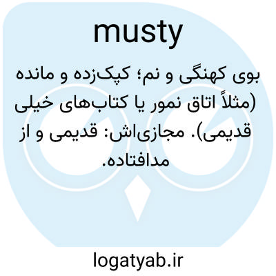 بوی کهنگی و نم؛ کپک‌زده و مانده (مثلاً اتاق نمور یا کتاب‌های خیلی قدیمی). مجازی‌اش: قدیمی و از مدافتاده.