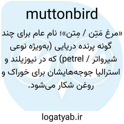 📌 هر یک از چندین پرندهی آبچر، دارای پرهای تیره با زیرتنهی خاکستری، به ویژه پرندهی آبچر دودهدار (Puffinus griseus) نیوزیلند، که توسط مائوریها برای غذا جمعآوری میشود. این پرنده در اقیانوس آرام زندگی میکند و در تابستان در استرالیا و نیوزیلند لانه میسازد.