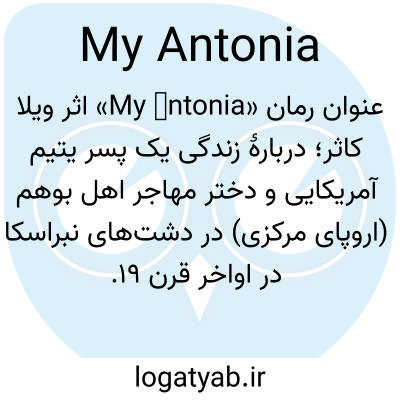 عنوان رمان «My Ántonia» اثر ویلا کاثر؛ دربارهٔ زندگی یک پسر یتیم آمریکایی و دختر مهاجر اهل بوهم (اروپای مرکزی) در دشت‌های نبراسکا در اواخر قرن ۱۹.