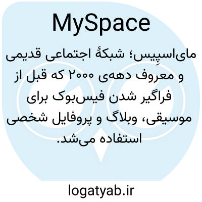 مای‌اسپِیس؛ شبکهٔ اجتماعی قدیمی و معروف دهه‌ی ۲۰۰۰ که قبل از فراگیر شدن فیس‌بوک برای موسیقی، وبلاگ و پروفایل شخصی استفاده می‌شد.