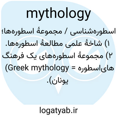 اسطوره‌شناسی / مجموعهٔ اسطوره‌ها؛ ۱) شاخهٔ علمی مطالعهٔ اسطوره‌ها. ۲) مجموعهٔ اسطوره‌های یک فرهنگ (Greek mythology = اسطوره‌های یونان).