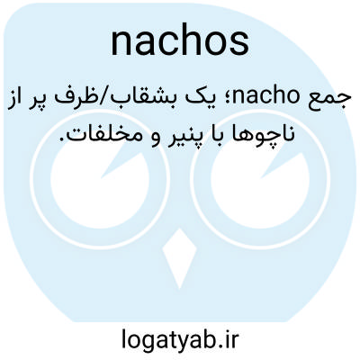 📌 پیشغذا یا غذایی از چیپس تورتیلا که با پنیر آبشده یا سس پنیر گرم پوشانده شده و روی آن فلفل هالوپینو ترشی، گوجهفرنگی، پیاز، گوشت چرخکرده تند یا سایر چاشنیها قرار میگیرد.