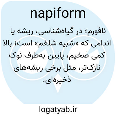 نپیفرم، ناپی-شکل، صفت. به شکل شلغم: بزرگ و گرد در بالا و باریک در پایین.