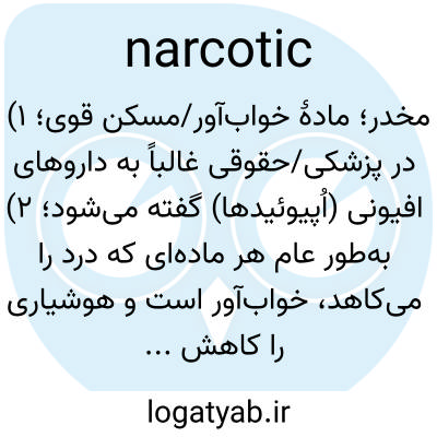 📌 هر یک از دسته‌ای از مواد که حواس را کند می‌کنند، مانند تریاک، مورفین، بلادونا، ماری‌جوانا و الکل، که در مقادیر زیاد باعث سرخوشی، بی‌حسی یا اغما می‌شوند، که در صورت مصرف مداوم می‌توانند باعث عادت یا اعتیاد شوند، و در پزشکی برای تسکین درد، ایجاد آرام‌بخشی و ایجاد خواب استفاده می‌شوند.