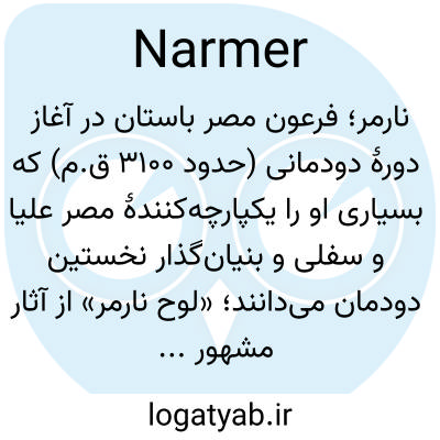 نارمر؛ فرعون مصر باستان در آغاز دورهٔ دودمانی (حدود ۳۱۰۰ ق.م) که بسیاری او را یکپارچه‌کنندهٔ مصر علیا و سفلی و بنیان‌گذار نخستین دودمان می‌دانند؛ «لوح نارمر» از آثار مشهور اوست.