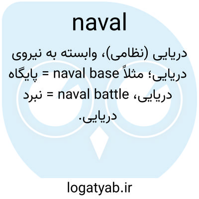 دریایی (نظامی)، وابسته به نیروی دریایی؛ مثلاً naval base = پایگاه دریایی، naval battle = نبرد دریایی.