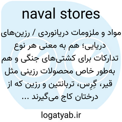 مواد و ملزومات دریانوردی / رزین‌های دریایی؛ هم به معنی هر نوع تدارکات برای کشتی‌های جنگی و هم به‌طور خاص محصولات رزینی مثل قیر، گِرِس، تربانتین و رزین که از درختان کاج می‌گیرند و در ساخت و نگهداری کشتی‌های چوبی استفاده می‌شده.