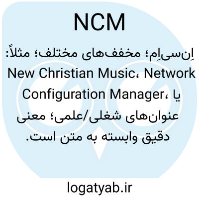 اِن‌سی‌اِم؛ مخفف‌های مختلف؛ مثلاً: New Christian Music، Network Configuration Manager، یا عنوان‌های شغلی/علمی؛ معنی دقیق وابسته به متن است.