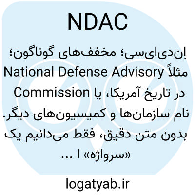 اِن‌دی‌ای‌سی؛ مخفف‌های گوناگون؛ مثلاً National Defense Advisory Commission در تاریخ آمریکا، یا نام سازمان‌ها و کمیسیون‌های دیگر. بدون متن دقیق، فقط می‌دانیم یک «سرواژه» است.